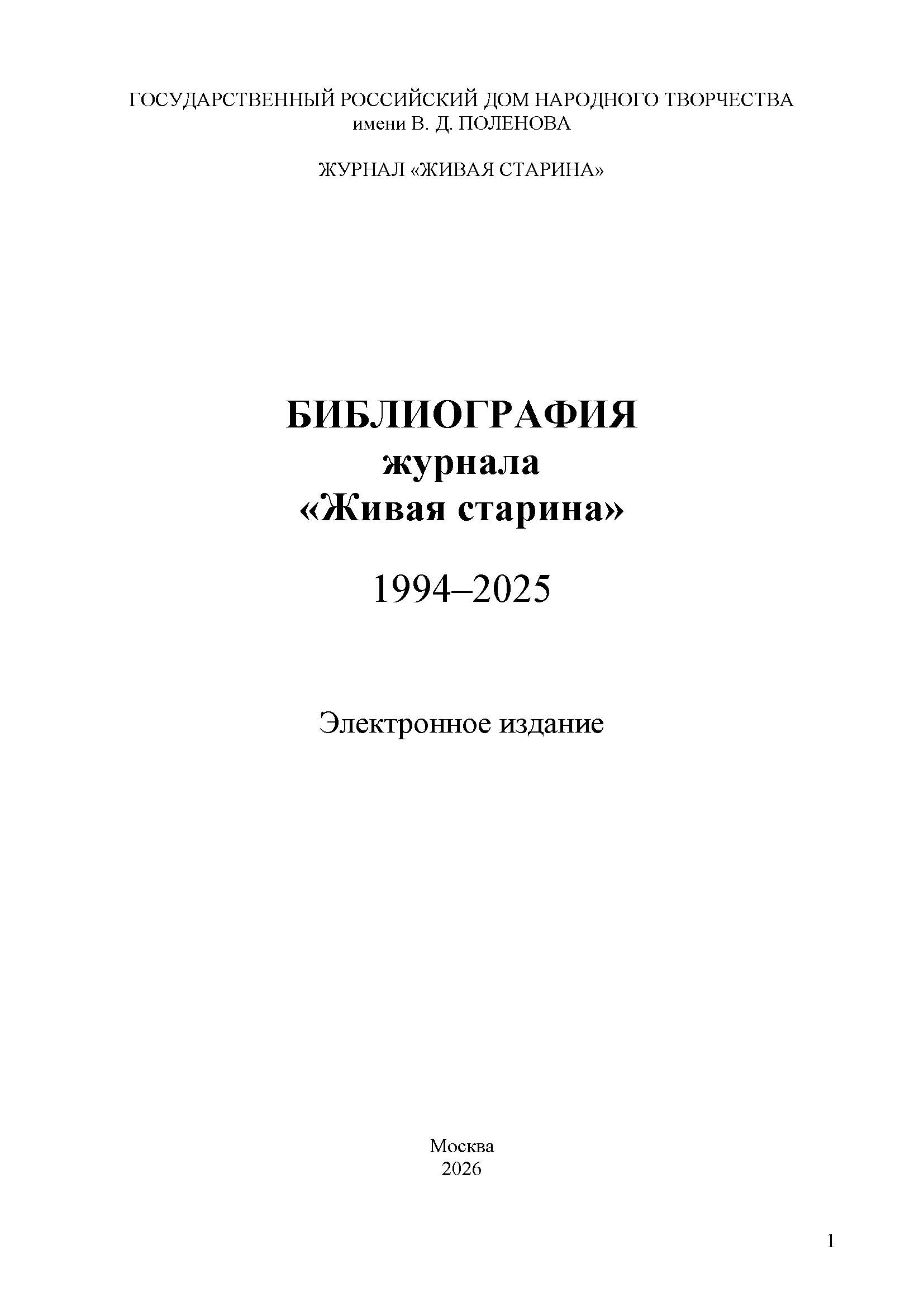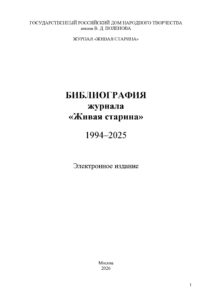В сводную библиографию вошли работы, опубликованные на страницах журнала с 1994 по 2025 год. Отдельные разделы составили список тематических рубрик журнала «Живая старина» за 32 года его существования.